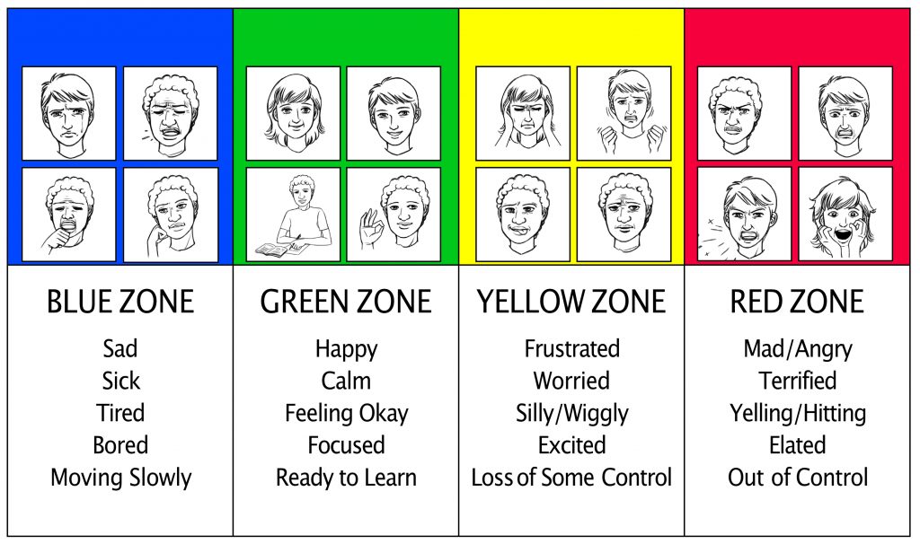 The Zones of regulation is a program to help your child learn to gain skills in the area of self-regulation. Self-regulation is the best state of alertness of both the body and emotions for a given situation.