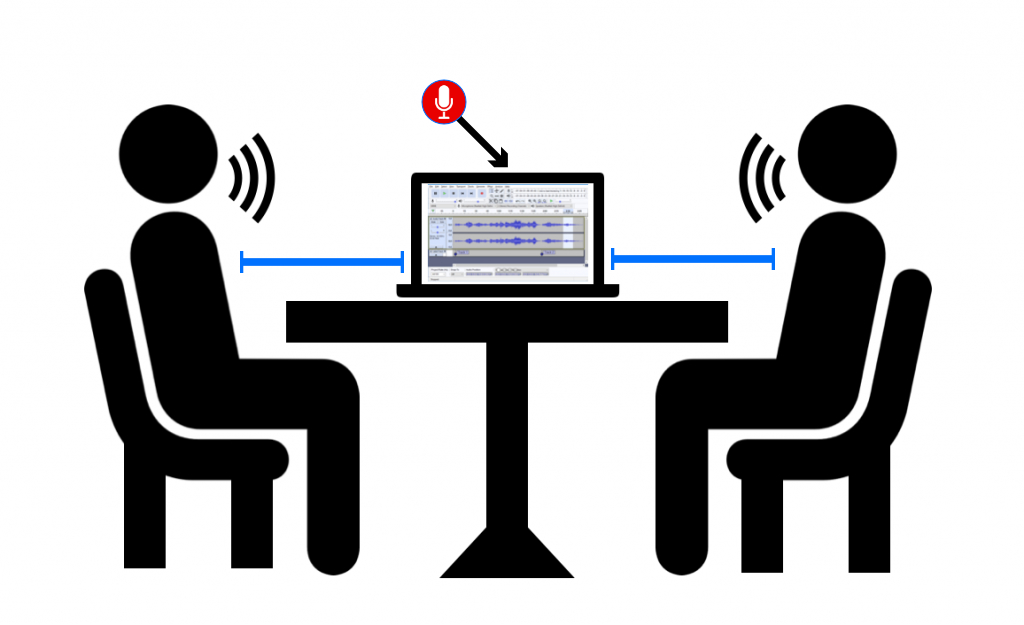 - Place the computer sideways between the interviewe and interviewee, so that the microphone is not oriented towards one or the other person.