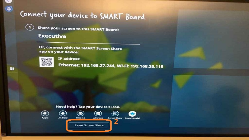 - On the SMART Board Home Screen, tap on Screen Share