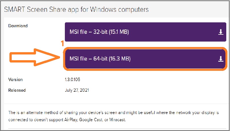 - Click on this Link to download and install the SMART Screen Share application on the laptop.