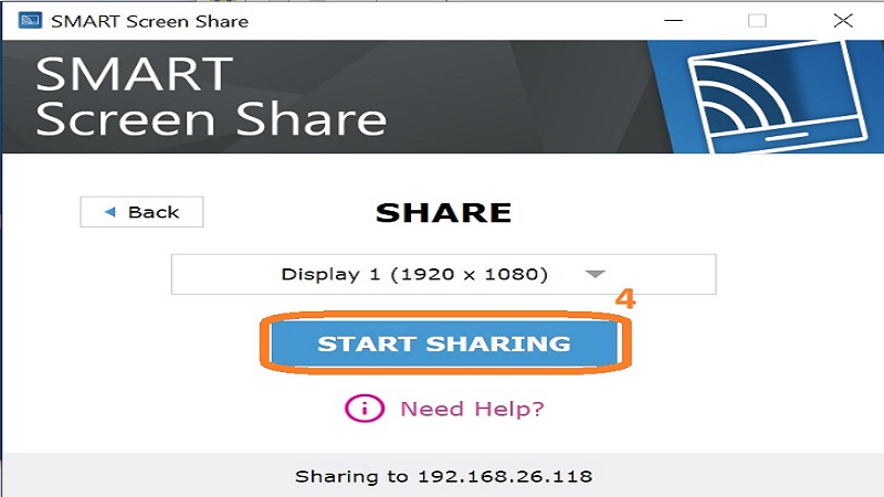 - Click Start Sharing to connect wirelessly to the SMART Board.
