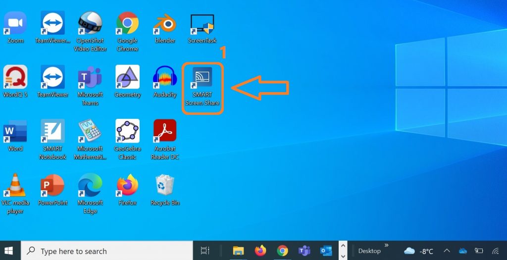 - On the Desktop, click on the SMART Screen Share shortcut.