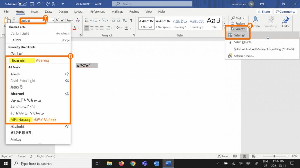 - Select a new font. We recommend using either Ilisarniq (the KI font) or AiPai Nutaaq.