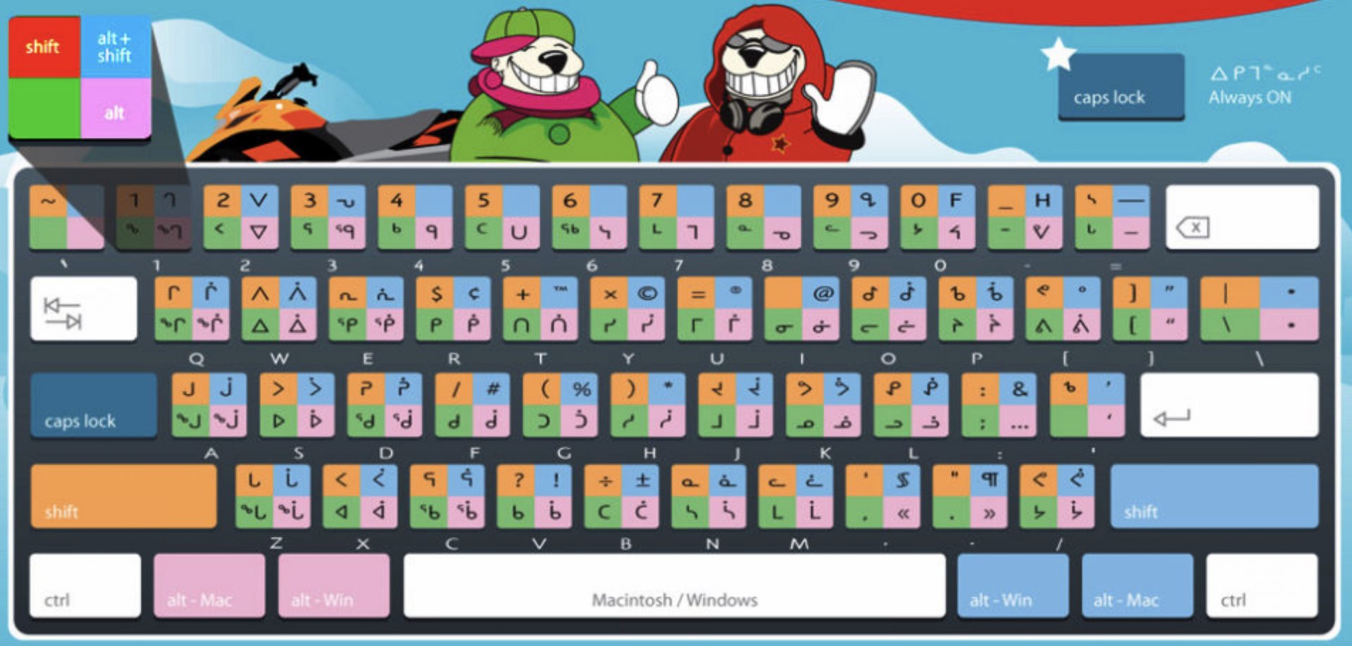 The AiPai Inuktitut keyboard allows you to type syllabic characters using your regular computer keyboard. This article explains how to use the AiPai Inuktitut keyboard, already installed on all KI teacher and student computers. If you are using a different computer, you will need to install the keyboard (PC or Mac) first.