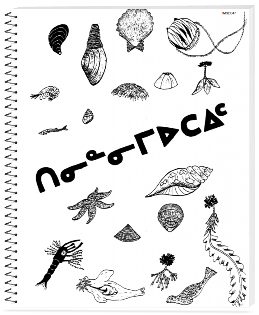 This Inuktitut reference document is full of hand-drawn images that illustrate the characteristics, the harvest, the preparation and the consumption of sea and seashore creatures.