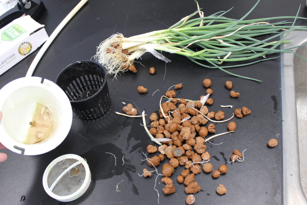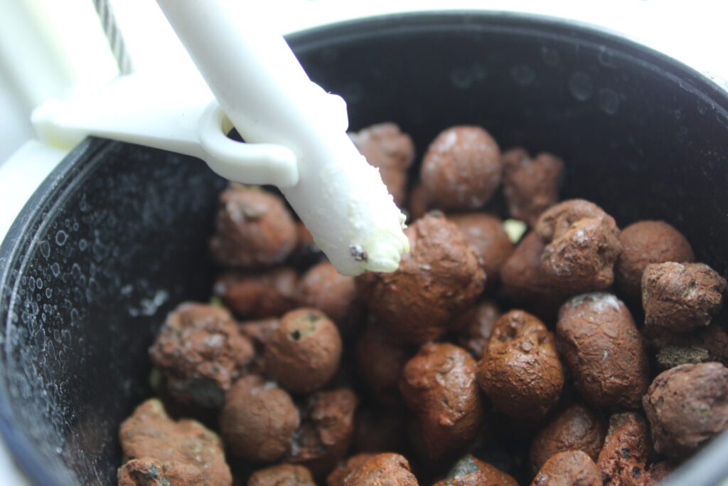 Begin by rinsing the hydroculture, trying not to break any of the clay pellets. You will notice brown dust coming off of the pellets, this will continue throughout the growing phase but it is important to remove as much as possible before putting it into the system.