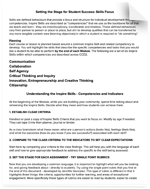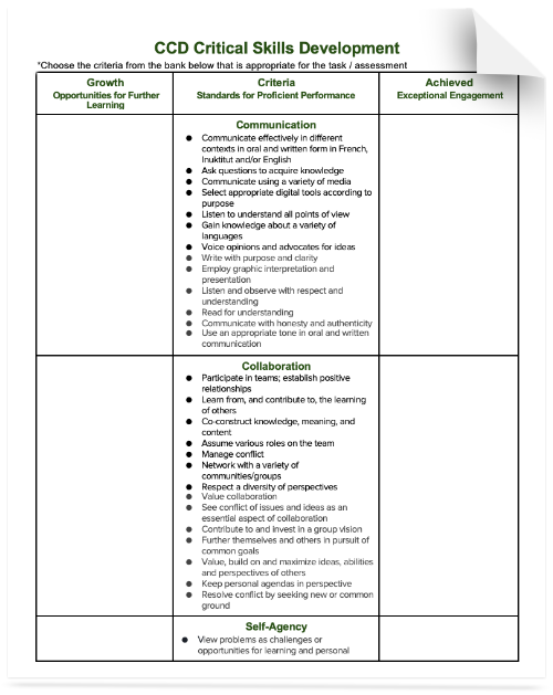 Document d’information, rubrique d’évaluation et évaluation des habiletés essentielles de la carrière et du développement communautaire.