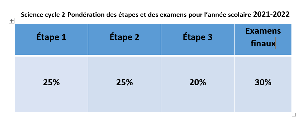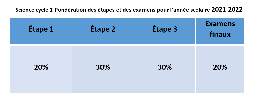 Au cycle 1, cette compétence est pondérée à 40% de la note de l’élève.