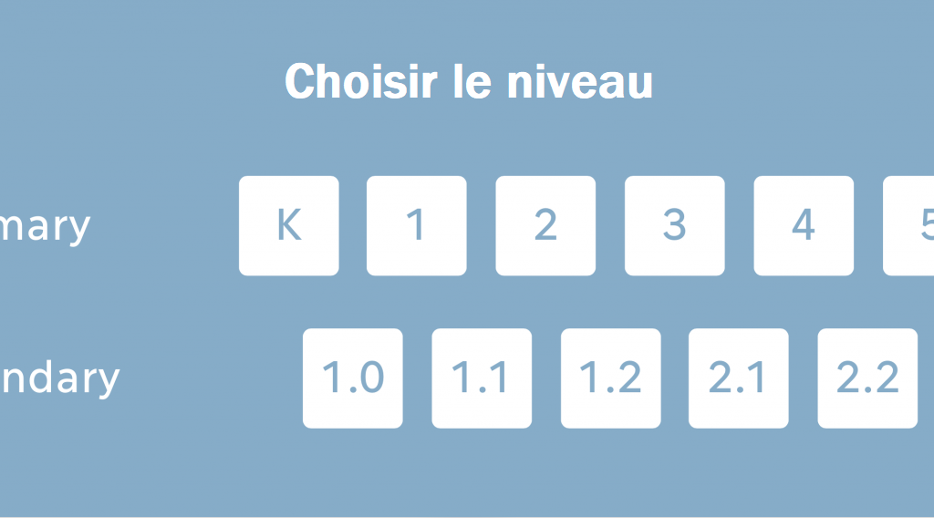 ℹ️ Pour être certain que les élèves accèdent à du contenu approprié à leur âge, les ressources sont automatiquement filtrées en fonction du niveau sélectionné.