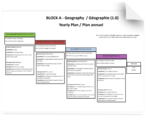 Chaque bloc représente le contenu nécessaire à enseigner aux étudiants pour une année scolaire. Ces blocs sont différents les uns des autres et comportent un nombre de SAÉ qui peuvent différer. Certaines de ces SAÉ sont accompagnées d’un dossier documentaire (DD) d’autres non. Vous pouvez vous référer au guide de l’enseignant qui accompagne chaque SAÉ pour vous renseigner sur les notions importantes contenues dans une SAÉ en particulier afin de préparer des leçons ou des activités pertinentes et diversifiées. Pour vous donner une idée générale du déroulement de l’année scolaire en Univers Social vous pouvez jeter un coup d’œil sur la planification annuelle conseillée de chaque blocs. Toutes les ressources liées aux blocs sont également accessibles sur les différentes plateformes de KI.