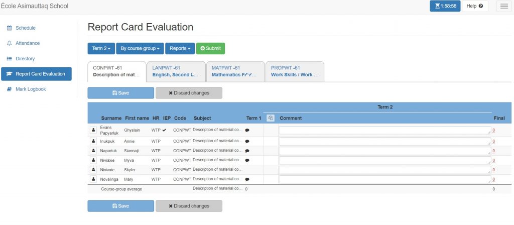 Si votre horaire n’est pas établi au moment de votre arrivée, vous et votre directeur devez l’organiser avant le 30 septembre. Veuillez noter que la FPT et FMS doivent être enregistrés en tant que programme de niveau secondaire. Cela veut donc dire que les présences des élèves doivent être prises par période et non par matin/après-midi.
